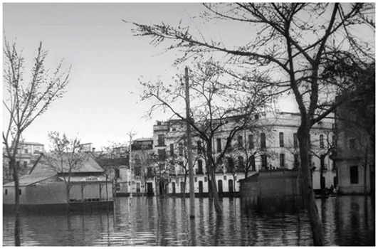 A pesar de la muralla y de las infraestructuras de drenaje acometidos, la Alameda siguió constituyendo una de las zonas más inundables de la ciudad, por su cercanía al río y por su baja cota.