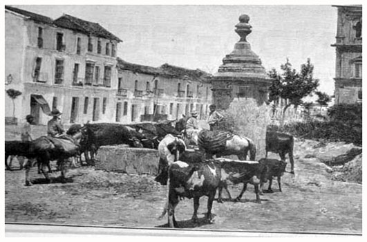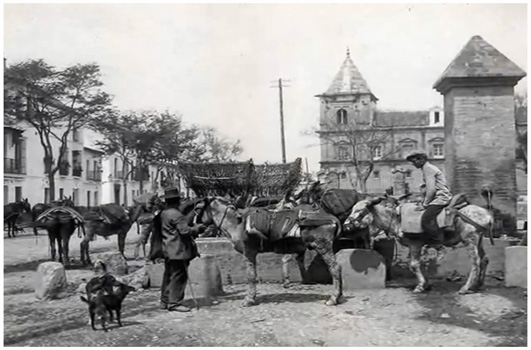 En esta ocasión les mostramos la Fuente-Abrevadero que existia en la Macarena, justo en la esquina de la calle Don Fadrique, esta servía tanto para calmar la sed de los caminantes, como la de los animales, en las images podemos ver al fondo la fachada del Hospital de las Cinco Llagas.